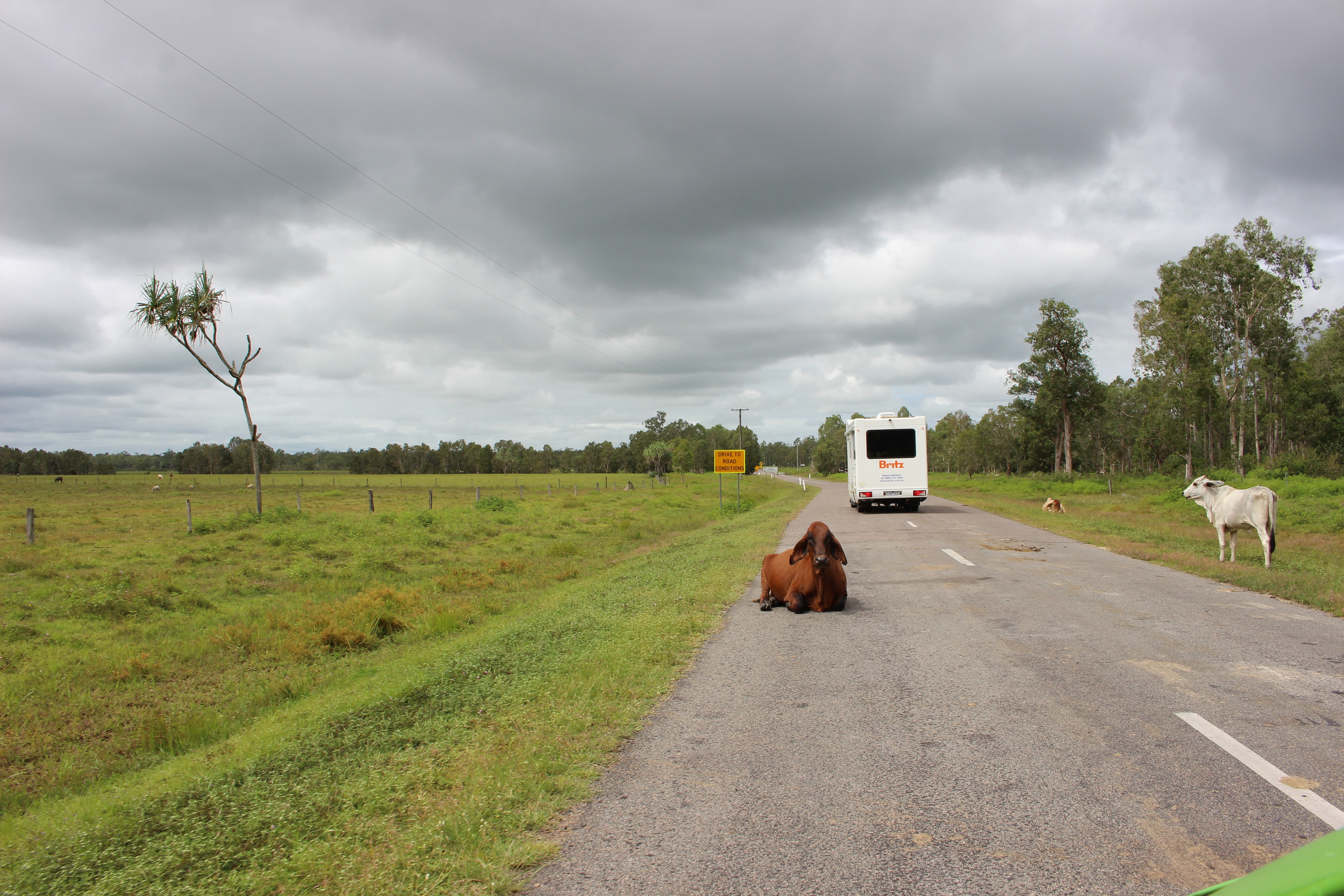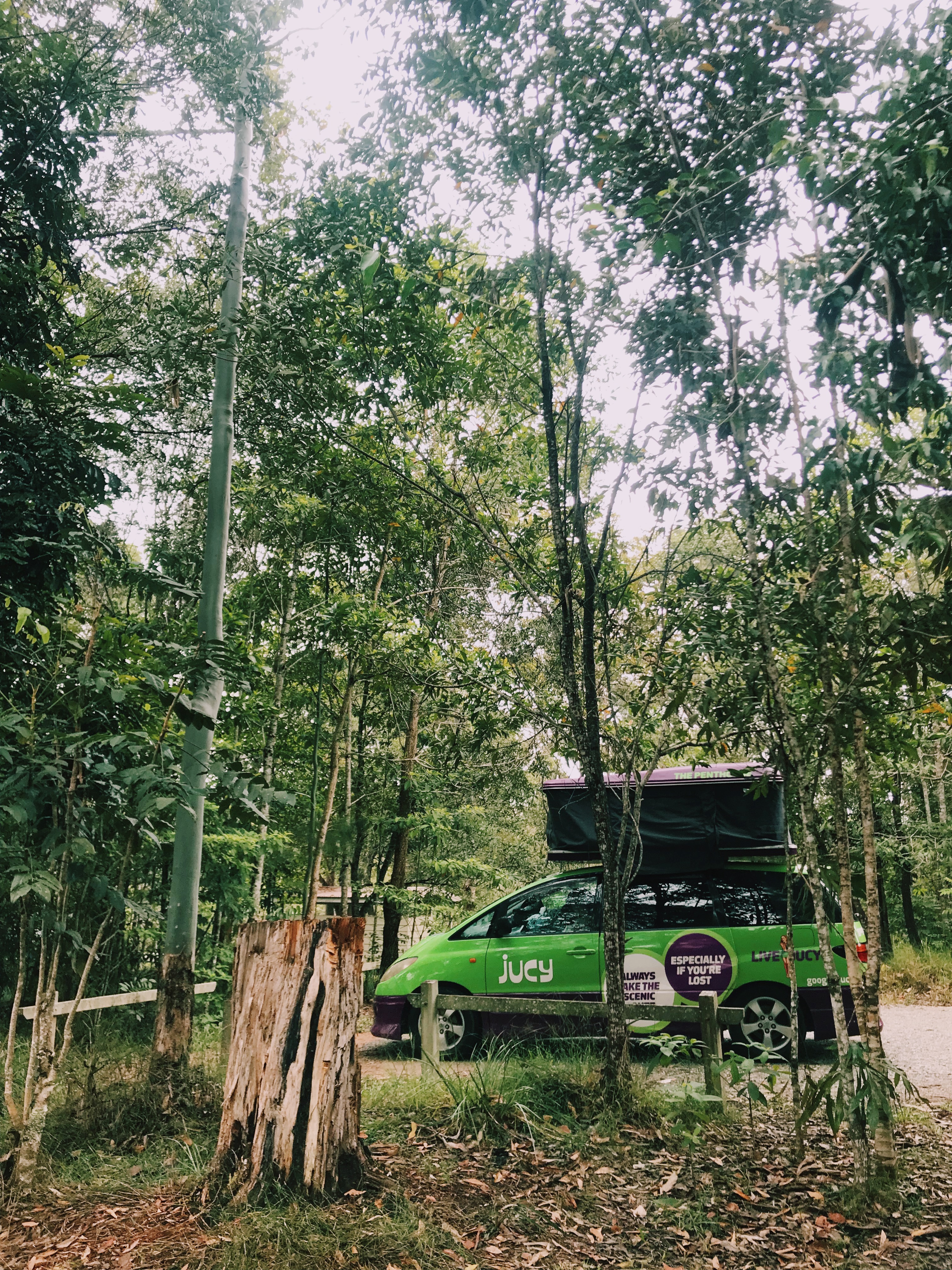 Only four hours in, our first sign of bad luck appeared as a frog jumped onto Julia’s lap mid-drive. Freaking out, we pulled over to begin “Operation Get the Frog Out of the Car.” The poor little guy was terrified, but we got him out and back to safety. Then the rain came. Sleets of rain on a two-lane highway with only semi trucks and our little Jucy van struggling to see through the downpour. Finally arriving at the biggest city on the map, Rockhampton (yes yes just like Brockhampton only its not on Spotify) we expected there to be any campsite or motorhome we could stay. False. Instead, we left the sleeping Kayla in the back and headed into what became our favorite gas station ever. Julia was so dead she ordered an “empty coffee”…so this was the state we were in. Loading up on oreos and bread, we pushed on with about 9 more hours to go. Right when our eyes started going in and out of focus, we found a camping spot for the night! Once we arrived, we realized we entered the gates of hell in which we would be murdered if we didn’t escape within the next thirty seconds. At this moment, Bruce Highway felt like home.