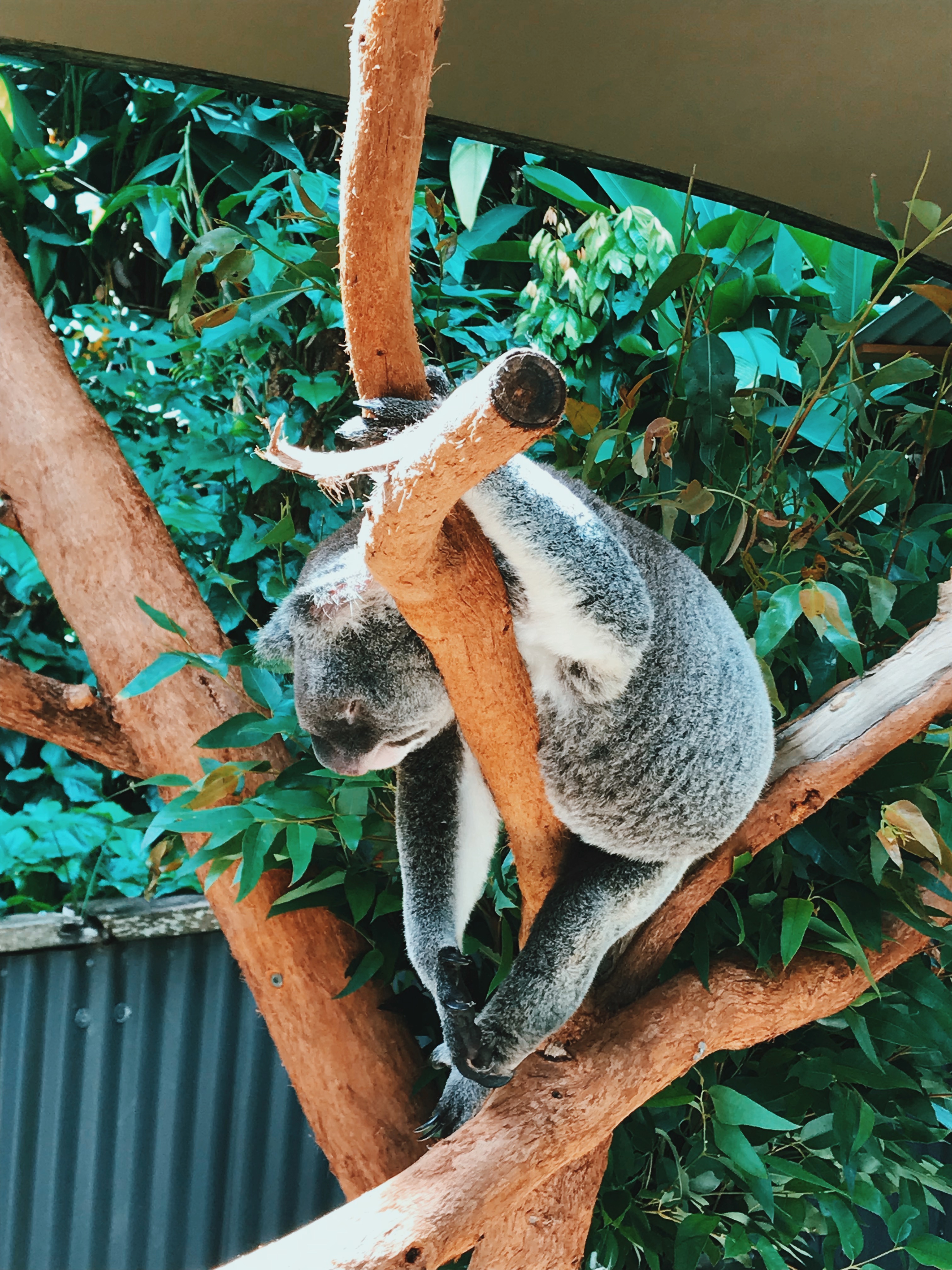 Although we had been in Cairns for the last few days, we had time to kill until we picked up our friend Kayla, who was flying in from her skydive boogie later that night, so decided to further explore the surroundings. We drove to Kuranda to see koalas, crocodiles, and kangaroos (oh my!). The town was pretty cute too, small and touristy, with lots of different types of food. We even found a vegan food cart that sold fresh coconuts, yummy wraps, and acai bowls!